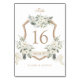 Elegant Floral White Greenery Crest Table Number
