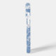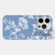 This phone case features a graceful light blue background adorned with a white floral pattern, showcasing intricate illustrations of flowers and leaves. The design combines elegance with a modern aesthetic, making it visually appealing. A standout feature is the name "Katelynn" written in a stylish cursive font along the right side, adding a personal touch to the case. The phone itself has a triple-camera setup, indicating a contemporary model. This accessory blends customisation with beauty, making it both functional and fashionable.