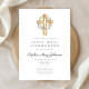 Personalised Elegant Floral Wreath Cross Girl First Communion Invitation.