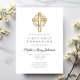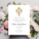 Elegant Floral Wreath Cross Girl First Communion Invitation