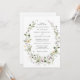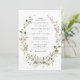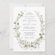 Wedding invitation featuring a watercolor wreath of wild flowers and greenery. Customise with your information.