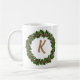 Elegant Floral Wreath Monogram Initial Christmas Coffee Mug