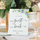 A radiant colourful wedding guest book sign with beautiful watercolor green botanical foliage and eucalyptus leaves. Enhance your wedding décor with this elegant floral yellow, blue, and white wedding pedestal sign. Featuring a sophisticated design adorned with delicate yellow blooms, soft white florals, and elegant blue accents, this sign exudes timeless charm and romance. The refined typography and airy watercolor details create a fresh and stylish aesthetic, making it perfect for welcoming guests, displaying seating arrangements, or highlighting important details. Ideal for spring and summer weddings, garden celebrations, or countryside venues, this beautifully crafted pedestal sign adds a touch of elegance and sophistication to your special day.