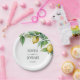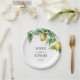 Elegant floral yellow lime white blue wedding paper plate