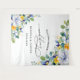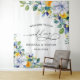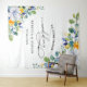 A radiant colourful wedding backdrop with beautiful watercolor green botanical foliage and eucalyptus leaves and sunny elegant yellow white flowers. Welcome your guests in style with this chic floral yellow, white, and blue wedding tapestry. Featuring a sophisticated design adorned with sunny yellow blooms, delicate blue flowers, and crisp white accents, this tapestry exudes warmth and elegance. The soft watercolor details and refined typography create a fresh and inviting aesthetic, perfect for spring and summer weddings. Ideal as a ceremony backdrop, reception décor, or photo booth accent, this stylish tapestry beautifully complements garden, beach, or countryside celebrations while adding a charming and personalised touch to your special day.