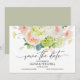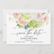 Beautiful watercolor of white and green hydrangeas with pink and cream roses, daisies and small blossoms and leaves create these wedding save the date cards with your details in chic lettering. MATCHING items in our store.
