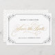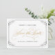 Elegant handwriting calligraphy script with flourish frame in classic gold, black and white, clean and formal, great wedding save the date cards for vintage wedding, traditional wedding, and classic wedding all year round.