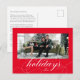 The Red and White Elegant Flourish Formal Script Holiday Photo Postcard is a refined and formal choice for expressing holiday wishes with sophistication and style. This photo card features a single, timeless photo against a clean and festive bright red background, allowing your cherished moment to take centre stage.