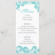 This Elegant Flourish Turquoise Wedding Menu is beautifully designed that matches the Return Address Label & wedding RSVP card designed by TA_design. This Menu looks best 4x9 inch. If you'd like to change to different size or you have problem editing the menu, please let me know!