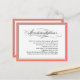 A beautifully elegant wedding accommodations insert card to include with your wedding invitations. It features calligraphy script text accents with a border in the trendy colour "living coral" surrounding your text. You can customise this colour to match your wedding colour scheme by selecting a different background colour for both the front and back side of this card. The simple, tasteful style works well for weddings in all seasons. Edit the sample text with hotel or other information for your guests.