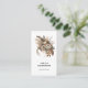 Business cards with a pretty bouquet of peach florals, surrounded by brownish bronze grasses and foliage with feather accents.