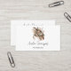 Business cards with a pretty bouquet of peach florals, surrounded by brownish bronze grasses and foliage with feather accents.