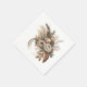Paper napkins with a pretty bouquet of peach florals, surrounded by brownish bronze grasses and foliage with feather accents.