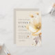Elegant and romantic watercolor one large flower white yellow and gold on sand wedding invitation with QR code for RSVP and wedding details.