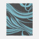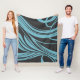 Elegant Flowing Lines in Turquoise on Black Fleece Blanket