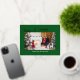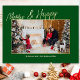 This elegant foil photo card features a simple, modern script message on a festive green background and room for a large family photo on the front and two additional photos on the back. Print and mail or download to email or text.