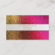 Elegant business card, with a pink and gold foil looking background. Graphics of a gold edged white stripe text area, stretches across the middle. Golden brown text is ready to personalise, with your information.