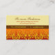 elegant business card design with golden yellow flourishes swirls, vintage ornaments.