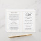 This program is an 8.5 x 11 page that requires you to fold it to assemble. The gold border is editable in thickness, size and colour. Classic understated black and white wedding program with a modern touch featuring the elegant script of a custom monogram.
