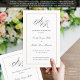 This program is an 8.5 x 11 page that requires you to fold it to assemble. The gold border is editable in thickness, size and color. Classic understated black and white wedding program with a modern touch featuring the elegant script of a custom monogram. S and R