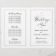 This program is an 8.5 x 11 page that requires you to fold it to assemble. The silver grey border is a solid matte colour. Classic understated black and white wedding program with a modern touch featuring the elegant script of the word "Wedding" on the outside "cover" and border.