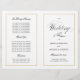 This program is an 8.5 x 11 page that requires you to fold it to assemble. The gold border is a solid matte colour. Classic understated black and white wedding program with a modern touch featuring the elegant script of the word "Wedding" on the outside "cover" and gold border.
