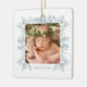 Elegant Foliage Frame First Christmas Blue Photo Ceramic Ornament