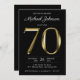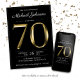Elegant For Him Gold Black 70th Birthday Invitation. Simple yet classy birthday invitation with the birth year milestone in solid gold text effect! This is an editable template and could be used for both male and female. A version with photo is also available in this design collection. Contact me if you have any questions, I will do my best to help!