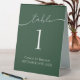 Elegant Forest Green Script Wedding Table Number sign to create a fun modern table setting for a classic wedding. Personalise it on the front and back.