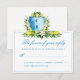 Elegant Formal Blue Floral Crest Wedding RSVP Enclosure Card