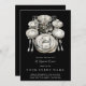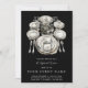 A modern formal sophisticated dinner event invitation featuring a formal dinner place setting; white on black.