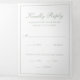 Traditional and classy all in one wedding invitation template with rsvp card and enclosure card attached, making this invitation suite convenient and budget friendly. The wedding invitation has your two initial monogram and your names in an elegant calligraphy inside of a thin border along with your favourite photo on the back. The design elements are in sage green and may be changed to any colour you wish in the design editing tool. The RSVP postcard has your mailing address on the back and your guests simply cut off and mail back to you. NOTE: First class postage is required for the RSVP postcard. Postcard stamps will not be enough postage due to the size. This classic design is perfect for a formal wedding. All-in one invitations are convenient and budget friendly.