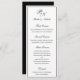 Traditional and classy wedding menu featuring a simple design with your two initial monogram, names and course headers in an elegant calligraphy. This classic black and white design is perfect for a formal wedding. Wedding menus are a great way to add an element of style and formality to your special day.
