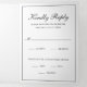 Traditional and classy all in one wedding invitation template with rsvp card and enclosure card attached, making this invitation suite convenient and budget friendly. The wedding invitation has your two initial monogram and your names in an elegant calligraphy inside of a thin border along with your favourite photo on the back. The design elements are in black and white and may be changed to any colour you wish in the design editing tool. The RSVP postcard has your mailing address on the back and your guests simply cut off and mail back to you. NOTE: First class postage is required for the RSVP postcard. Postcard stamps will not be enough postage due to the size. This classic black and white design is perfect for a formal wedding. All-in one invitations are convenient and budget friendly.