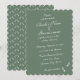 A beautiful elegant formal script typography wedding design with a sage olive green background colour. A unique design that uses a personal classic calligraphy wedding invitation font and a hand drawn greenery leaf branch. A formal script calligraphy design with tones of sage olive green. An elegant wedding invitation design with classic traditional elements. Matching wedding stationery items and other wedding invite formats are also available.