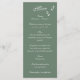 A beautiful elegant formal script typography wedding design with a sage olive green background colour. A unique design that uses a personal classic calligraphy wedding invitation font and a hand drawn greenery leaf branch. A formal script calligraphy design with tones of sage olive green. An elegant wedding menu card design with classic traditional elements. Matching wedding invitations and other stationery items are also available.