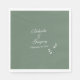 A beautiful elegant formal script typography wedding design with a sage olive green background colour. A unique design that uses a personal classic calligraphy wedding invitation font and a hand drawn greenery leaf branch. A formal script calligraphy design with tones of sage olive green. An elegant wedding paper napkin design with classic traditional elements. Matching wedding invitations and other stationery items are also available.