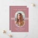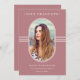 These elegant 2021 graduation announcement cards feature a rounded white frame surrounding your personal photo, with matching geometric lines and modern text on a trendy, dusty rose background. You can easily change the wording on the back of the card to make it either a graduation announcement or a grad party invitation. The design is stylish yet professional enough to be perfect for either a high school or college university graduate.