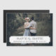 Chic modern photo card wedding Save the Date magnets. Template features space for one of your engagement photos with a simple classic frame overlay where you can add your wedding date and the bride and groom's names. Use the design tools to further customise the design.