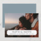 Chic modern photo card wedding Save the Date design. Template features space for one of your engagement photos with a simple classic frame overlay where you can add your wedding date and the bride and groom's names. There is room on the back side to add additional text if needed. Use the design tools to customise fonts, move text around, change paper types and background colour to create your own unique one-of-a-kind announcement design.
