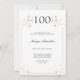 A formal 100th birthday party invitation with elegant gold design elements and a white background. Simply customise this invitation, add it to your cart, and celebrate this milestone birthday.