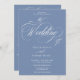 Elegant French Blue Script All in One Wedding Invitation