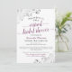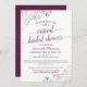 Even when you can't be together, you can still celebrate together. So if you can't have a bridal shower in person, why not take it online? This beautiful invitation features a cassis purple, white and grey theme with frilly silver faux foil corners and lacy script calligraphy.