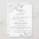 Even when you can't be together, you can still celebrate together. So if you can't have a bridal shower in person, why not take it online? This beautiful invitation features a sage green and white theme with frilly silver faux foil corners and lacy script calligraphy.