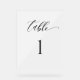 Help your guest find their table with these elegant modern acrylic table number signs. Design with beautiful graceful modern calligraphy details.  Use the template to fill in your table numbers and add them to your shopping cart one by one, until you have completed all your table signs, then proceed to payment.  You may edit this design using the design tool, and make changes to the number font size, font style, and even its positioning.  8" x 10" is only our default size, the sign is available in several sizes.  Elegant, simple, and clean style. Matching frosted-style acrylic seating chart card signs are also available. "IMPORTANT NOTE: sign in a high-quality acrylic sheet with the text printed in black and a frosted faux look behind, providing a clear view of the text in all spaces, and giving you the frosted appeal for a fraction of the cost! Small sizes come with a wood block to stand. Part of our "Modern Elegant Wedding and Events Signage" collection with many coordinating products available.
