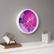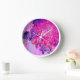 This quiet non-ticking Colourful Round Wood Framed Wall Clock features an Elegant Fuchsia and Dark Blue Limelight Hydrangea with Magenta, Purple and Hot Pink Accents. The result is a colourful, modern, beautiful floral painting that you will love!