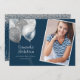 Elegant and fun college dorm shower/trunk party invitation in navy blue with silver glitter and balloons. Personalise by adding your photo and party information.