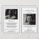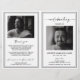 Funeral memorial program featuring on the front a photo of the deceased, thier name, dates, the memorial venue, date of the event, and elegant frame. On the inside is an obituary, and order of service; and on the back another photo, a thank you note and the second venue for after the funeral.