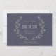 Hand drawn ornate greenery floral wreath design on dark navy background, sophisticated and elegant, perfect for outdoor garden wedding, country, rustic wedding; or a vintage wedding, winter or summer. Natural colour scheme, sage green, dark navy and pale beige. Custom your own save the date card for your wedding!