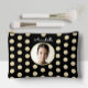 Elevate your style with this elegant black accessory pouch, featuring a chic faux gold circles pattern that pops against the simple black background. Personalise the front with your own photo and name in cute, handwritten white script, making it a truly unique accessory.